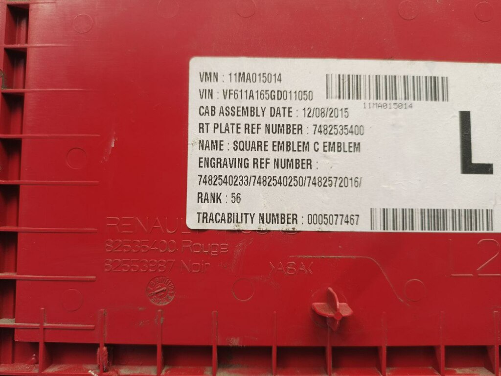 Предлагаем приобрести табличка кабины боковая левая б/у для Renault T-Series, оригинальный номер детали 7482535400 в наличии 1 шт за 3450 руб./шт с доставкой по России или самовывозом в Астрахани